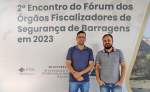 Em Brasília, os servidores Wagner Andretti Costa e Wallace Aniszewski Távora participam do Fórum de Órgãos Fiscalizadores de Segurança de Barragens promovido pela Agência Nacional de Águas e Saneamento Básico (ANA).