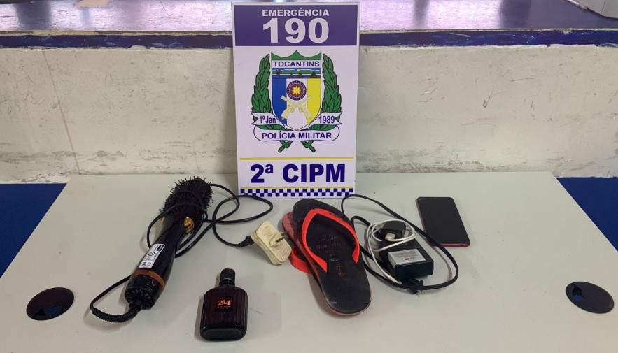 Dentre os objetos furtados estavam, um aparelho celular, uma escova de cabelo eletrônica, um perfume, uma sandália entre outros itens menores.