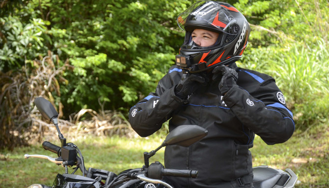 O tempo pode mudar de repente e o motociclista precisa estar pronto para se proteger em caso de chuva. Então, não se esqueça de levar uma capa de chuva.
